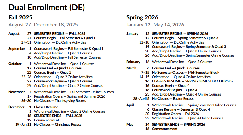 Qualified Juniors and Seniors may earn college credits while a full-time student with FBCS. Dedicated students can earn enough college credits to complete a full year of college study while in high school.